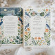Celebrate your wedding with this romantic watercolor invitation inspired by the Finnish wilderness. The design features a serene lake castle scene framed by gentle mountains and pine trees under a glowing sun. Soft florals in peach, pale pink, and blue line the borders along with delicate foliage and sweet songbirds in cool greys and sky blues. The back side transitions into a dreamy night scene with a sailboat, moon, and stars above a dark forest lake, accompanied by detailed wildflowers and forest birds. Perfect for nature-loving couples or destination weddings in Helsinki, Finland.