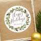 Watercolor Holly Berry Wreath Happy Holidays Classic Round Sticker
