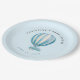 Celebrate your child's birthday party or baby shower party with these party plates featuring a cute watercolor blue hot air balloon and cloud illustration on a blue background for a travel theme.