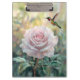 This stunning clipboard features a vibrant watercolor design of a hummingbird gracefully hovering near a blooming pink rose. The intricate details of the hummingbird's iridescent feathers are beautifully complemented by the soft pastel hues of the rose petals, creating an artistic and elegant accessory for any workspace. Made from high-quality materials, this clipboard is durable and functional, perfect for holding documents, notes, or artwork securely in place. Ideal for students, professionals, or anyone who appreciates nature-inspired designs, it adds a touch of beauty and charm to your everyday tasks.