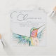 A hand-painted watercolor hummingbird with stunning colourful detail decorates this unique, delicate and loving celebration of life invitation in classic silver