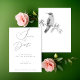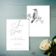 These beautifully elegant black and white wedding save the date cards are designed with a hand-painted watercolor hummingbird. Customise with the details of your special day for classic memorable invites.