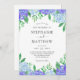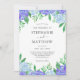 These wedding invitations feature watercolor purple and blue hydrangea flowers and greenery foliage leaves. Personalise them with your own text. Matching products also available.