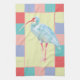 Watercolor Ibis Bird Chequerboard Design Tea Towel