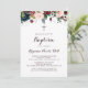 This watercolor illustrated fall calligraphy baptism invitation is perfect for a simple baby baptism or christening. The design features artistic hand-painted watercolor navy blue, burgundy, red, blush roses and peonies with elegant green leaves, inspiring the colourful idyllic autumn beauty.
