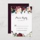 These watercolor illustrated fall floral RSVP cards are perfect for a simple wedding. The design features artistic hand-painted watercolor navy blue, burgundy, red, blush roses and peonies with elegant green leaves, inspiring the colourful idyllic autumn beauty.