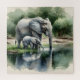 Watercolor Illustration of Mama and Baby Elephant Jigsaw Puzzle