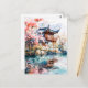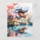 Watercolor ink of chinese template on lake. postcard