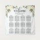 Lovely seating chart in watercolor floral pink, ivory, cream and greenery for 12 tables. White background. Easy to add your guest names. Perfect for hall reception decor. WELCOME sign in calligraphy letters.