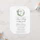 Elegant Watercolor Ivy Leaves Wreath First Holy Communion Invitation. Silver Cross.