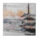 Watercolor Japanese Pagoda & Fuji Ceramic Tile