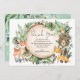 Whimsical thank you card featuring illustration of rustic watercolor greens, foliages and adorable jungle animals: deer, bear, raccoon, fox, skunk and a mouse