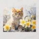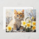 Watercolor Kitten and Daffodils Postcard
