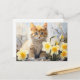 Watercolor blue eyed tabby kitten with pretty daffodils postcard. The perfect postcard to send a loved one whose birthday is in March with their own birth month flowers!