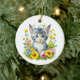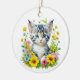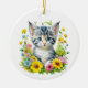 Watercolor Kitten Flowers Personalised Christmas Ceramic Ornament