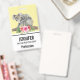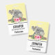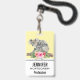Name badge with an adorable watercolor design. Koala bear mum and baby. Baby is riding on momma's back. Standing on a tree branch. A hibiscus flower bouquet below. Banana yellow background.