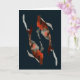 Hand drawn in watercolor abstract koi fish swimming design. red and navy blue colours.