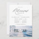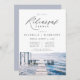This rehearsal dinner invitation and itinerary template features a watercolor lake scene and elegant handwritten font. Easily edit most wording to match your event.