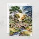 Watercolor landscape green garden bridge lake postcard
