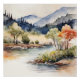 Elevate your space with the serene beauty of our AI-generated watercolor poster, featuring a breathtaking landscape of multi-shaded blue mountains, green and brown trees along the water's edge, and a tranquil river running through the scene. This peaceful and calming artwork is perfect for adding a touch of nature to any room.