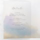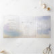 Tri-fold wedding invitation featuring a watercolor landscape with dreamy clouds.