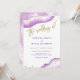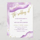 These elegant, modern wedding invitations feature watercolor lavender geode stones, with faux gold typography and splashes.