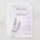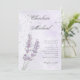 Watercolor lavender with watercolor spatter and a purple watercolor wash background. Elegant floral wedding invitation.