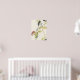 Leaf Branch Triptych I by Jennifer Goldberger. Watercolor droplets in goldish yellow, green, and reddish pink create gentle leaves on dark grey and black branches.