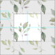 A delicate, watercolor design on a soft cream background of leaves in lite green to grey tones.