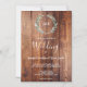 Watercolor leaves on rustic barn wood magnetic wedding invitation.
