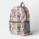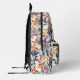 Whimsical watercolor leaves design backpack . Design features a seamless pattern of watercolor floral leaves in orange blue pink and green . Just add initials for a monogrammed gift to make a great fun backpack for students going back to school . Also great for weddings and Bachelorette / hen party events.
