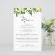 Customisable lemon wedding menu card. It features watercolor lemon and greenery. Personalise by adding date and meal choice. This lemon menu card is perfect for summer weddings, baby showers, bridal showers, birthdays, and so much more.