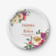 Watercolor lemon and magenta floral wedding paper plate