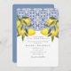 Watercolor Lemon Blue tile Mediterranean Wedding Invitation