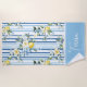 Stylish and customisable beach towel featuring a vibrant blue and white striped design adorned with delicate yellow and white flowers, a lemon accent, and personalised text. Perfect for adding a fresh and elegant touch to your device.