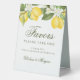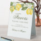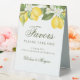 Elegant lemon citrus wedding favours tent sign for your party favours table. Customise the calligraphy script name template with your bride and groom names.