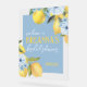 Welcome your guests with this wonderful stunning acrylic welcome sign. Personalise with your guest of honours name, event type and date. Part of our "Main Squeeze" bridal shower collection, but also works great for a lemon wedding, lemon birthday celebration or "Little Lemon" baby shower! Features beautiful yellow watercolor lemons and blue floral flowers.