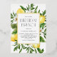 Invite guests to your event with this customisable birthday brunch invitation. It features watercolor frame of lemons and lemon blossoms with modern typography. Personalise this gold foil birthday brunch invitation by adding your details. This lemon birthday brunch invitation is perfect for summer birthdays.