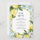 This customisable lemon bar menu card features watercolour lemons, greenery, and a Mediterranean tile pattern. Personalise by adding a date and meal choice. This lemon menu card is perfect for summer weddings, baby showers, bridal showers, birthdays, and so much more.