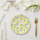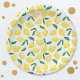 Pretty watercolor citrus lemon pattern in yellow with navy blue leaves on a white background for a fruity summer shot of visual Vitamin C. Original art by Nic Squirrell.