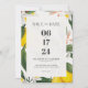Watercolor Lemon, White Flower Wedding Invitation