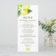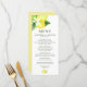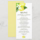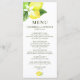 Watercolor lemons with greenery and lemon blossoms is featured on this pretty wedding menu. Personalise with the your names, wedding date and menu. The reverse is coordinated in yellow