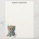 An elegant letterhead featuring a white front with a watercolor leopard and personalized name. The back shows a sage boho geometric striped pattern that feels both modern and rustic. Perfect for letters, personal branding, or sophisticated correspondence.