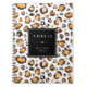 Stylish notebook for your brilliant ideas, thoughts, doodles, lists, or whatever else you want to jot down. It features a leopard print hand painted in black, brown, and orange watercolors and a pretty label with your name.