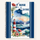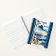 A nautical notebook featuring a watercolor painting of a lighthouse with colourful flowers at sunrise.