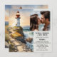 A romantic wedding invitation featuring your photo on a watercolor painting of a lighthouse at sunset. On the back is an easily customisable QR code by adding your website URL. Great for a beach or destination wedding.