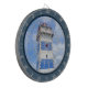 Nautical themed design with watercolor lighthouse decoration in dark blue frame. It is possible to change the background colour and to add different one to the design with your choice.