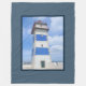 Nautical themed design with watercolor lighthouse decoration in dark blue frame. It is possible to change the background colour and to add different one to the design with your choice.