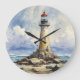 Featuring a serene watercolour painting of a lighthouse, this Watercolor Lighthouse Clock brings a coastal charm to any room. Perfect for coastal decor enthusiasts or anyone who loves unique, hand-painted art pieces. Add a touch of elegance and tranquility to your home with this timeless and eye-catching design.