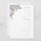 Guide your guests through your special day with this elegant watercolor lilac wedding ceremony program. The front features soft purple lilac blooms and lush eucalyptus greenery in the upper corner, with a clean white background and romantic grey script typography listing the full ceremony order — from Prelude to Recessional. The back displays the complete wedding party with all roles and names, fully customisable to match your event. A beautiful and functional keepsake your guests will love. Perfect for spring and summer weddings with a botanical, garden, or purple and green colour palette. Coordinates seamlessly with the full lilac wedding stationery suite.